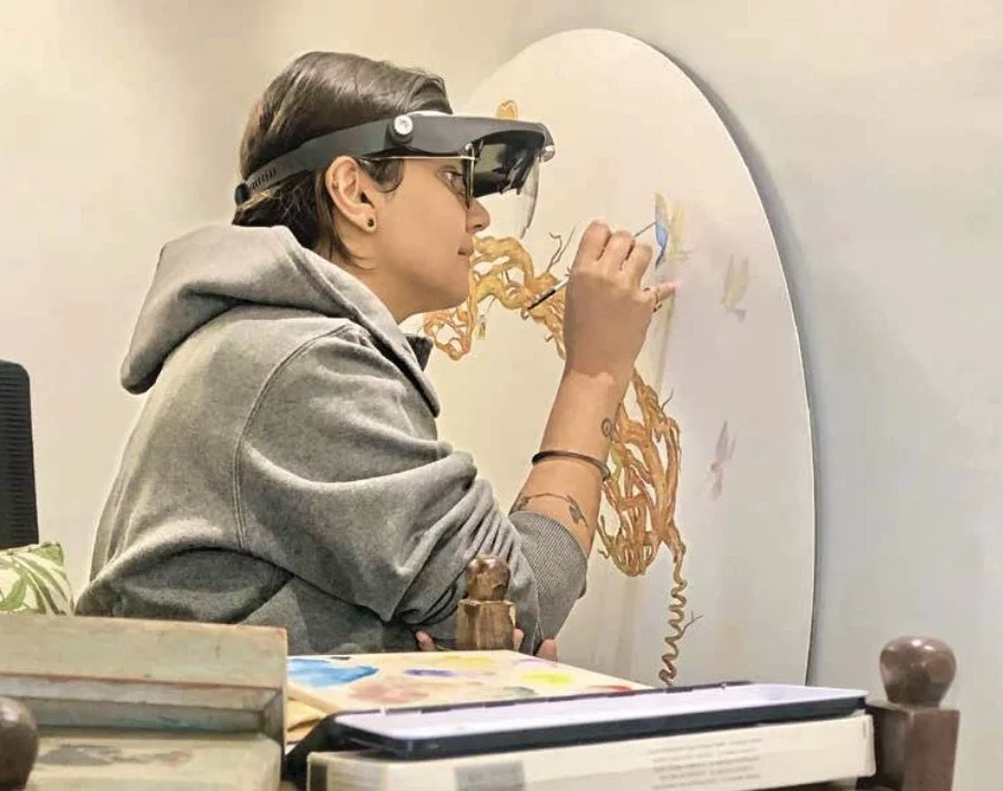 Her technique of painting is quite captivating and meditative. Her interest in Indian miniature paintings has helped her generate a unique language of her own. The message and the feeling as a takeaway from her works is similar to what is quoted in the Bhagavad Gita: "Let us become humbler like a beard of grass, more tolerant like a tree, ready to give all respect to others and don't expect anything." Trees are "Paropkar" and the symbol of total dedication of compassionate service towards others.